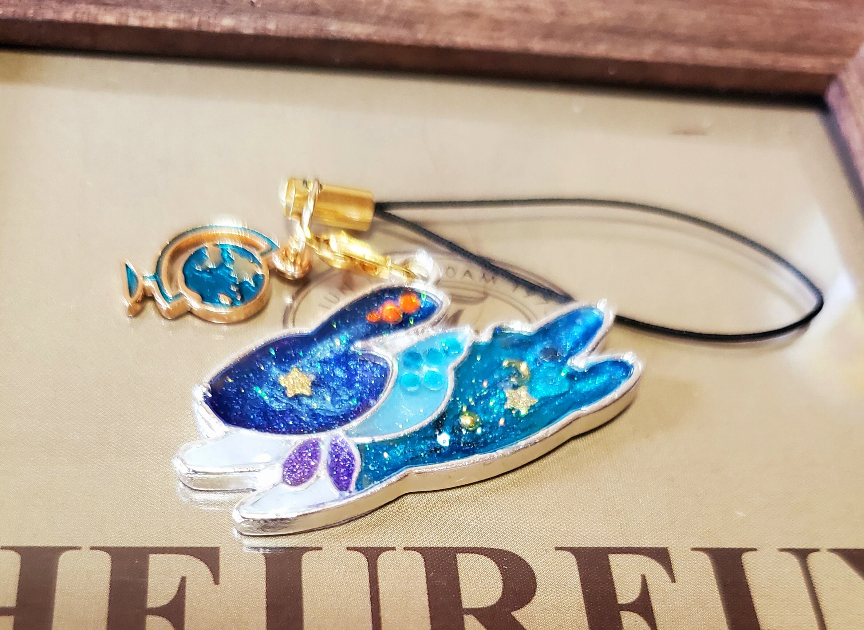 地球儀のミニチャームに宇宙色をイメージしたうさちゃんチャームです♪