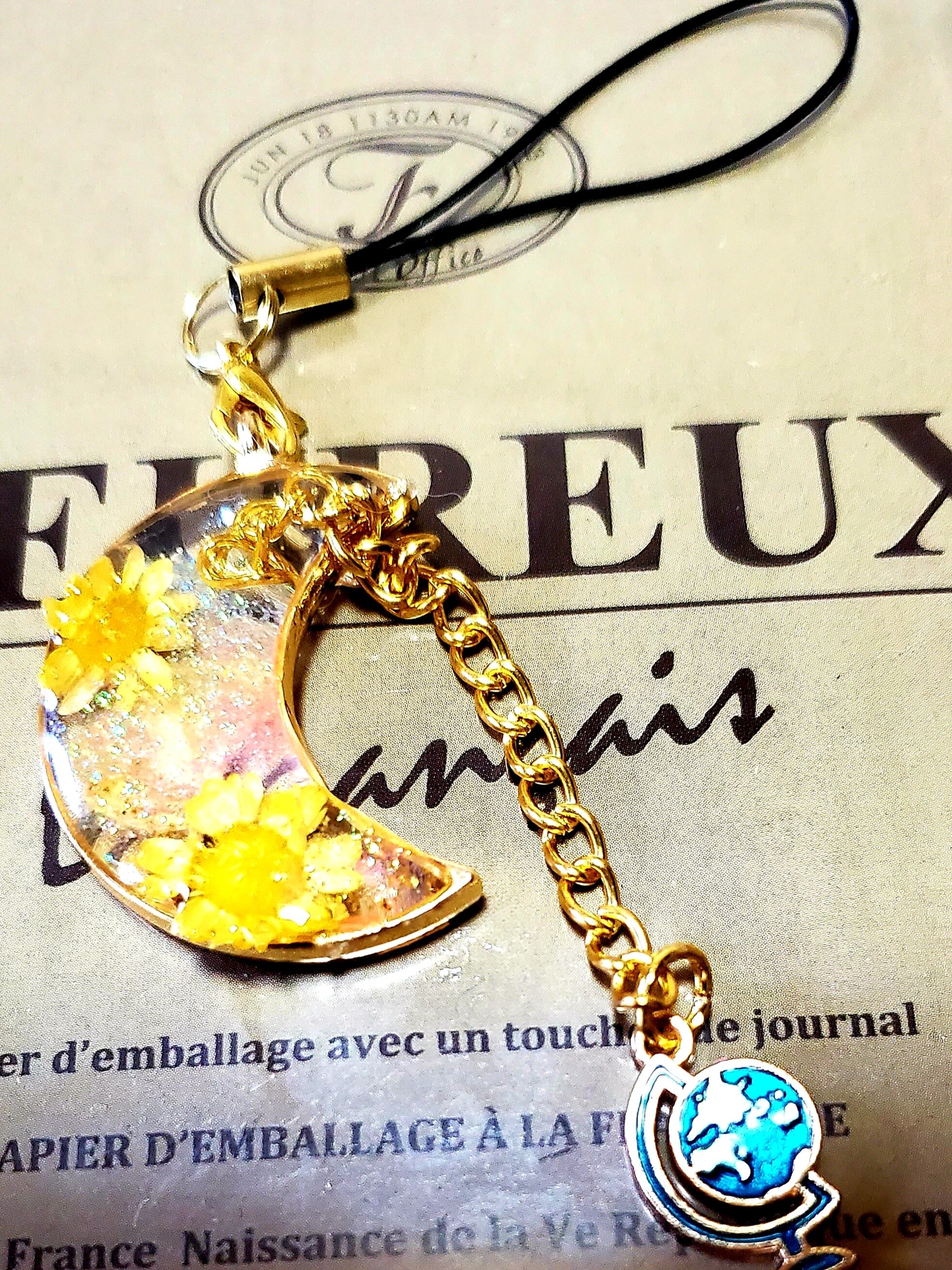 黄色のお花をレジンでお月様に入れました♪