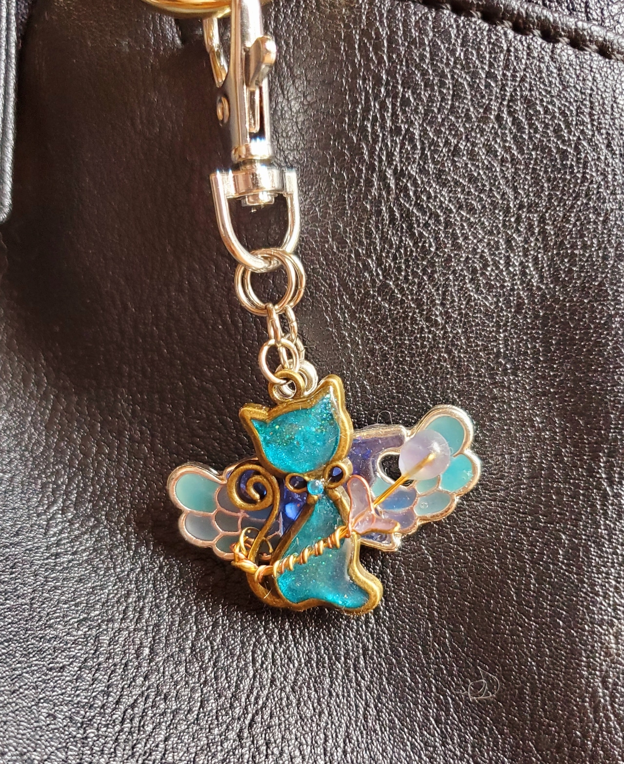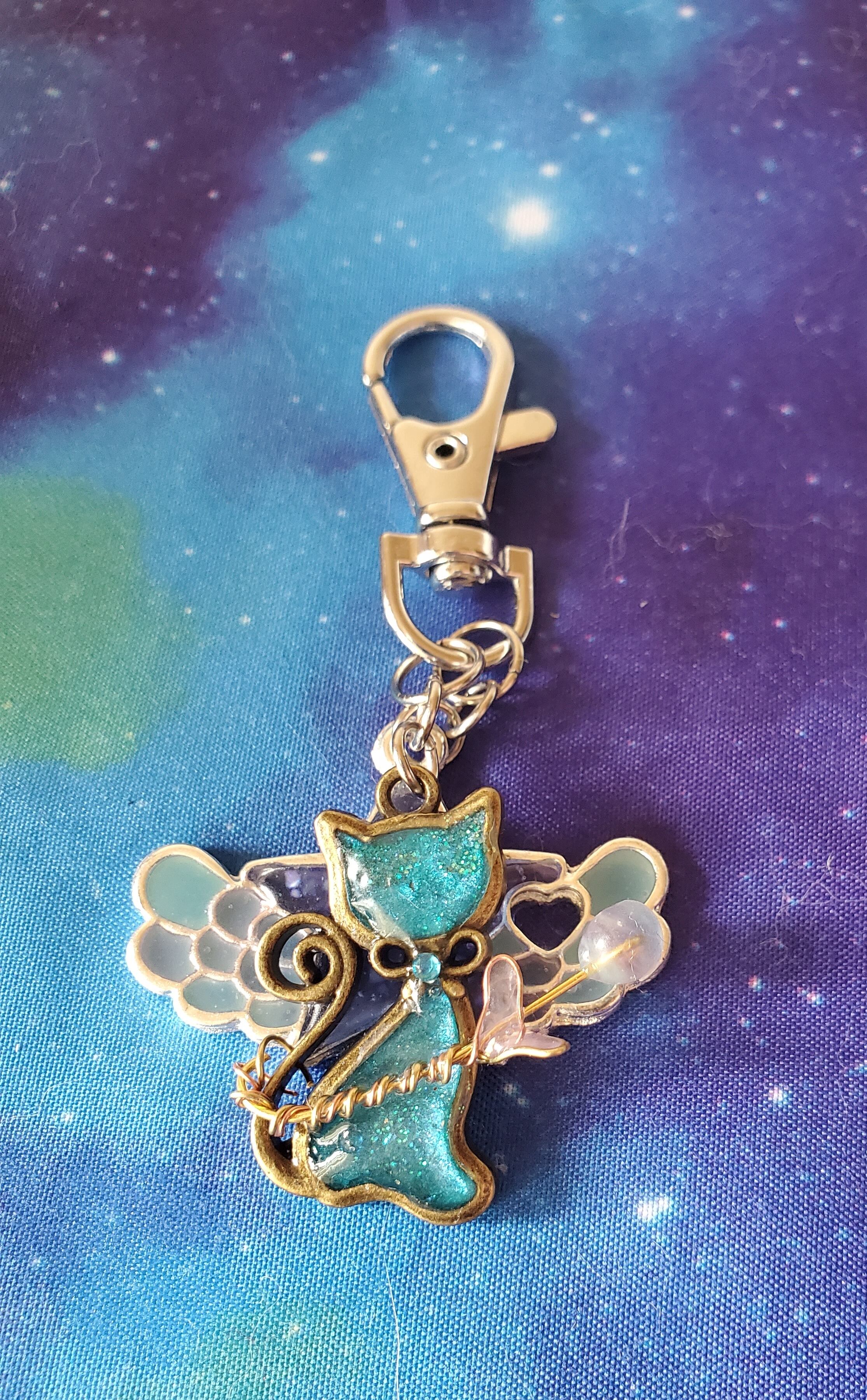 星は青と紫をペースにクラッシュシェルを混ぜ、羽部分は濃い水色で猫と似てないようで似てる色合いにしました。