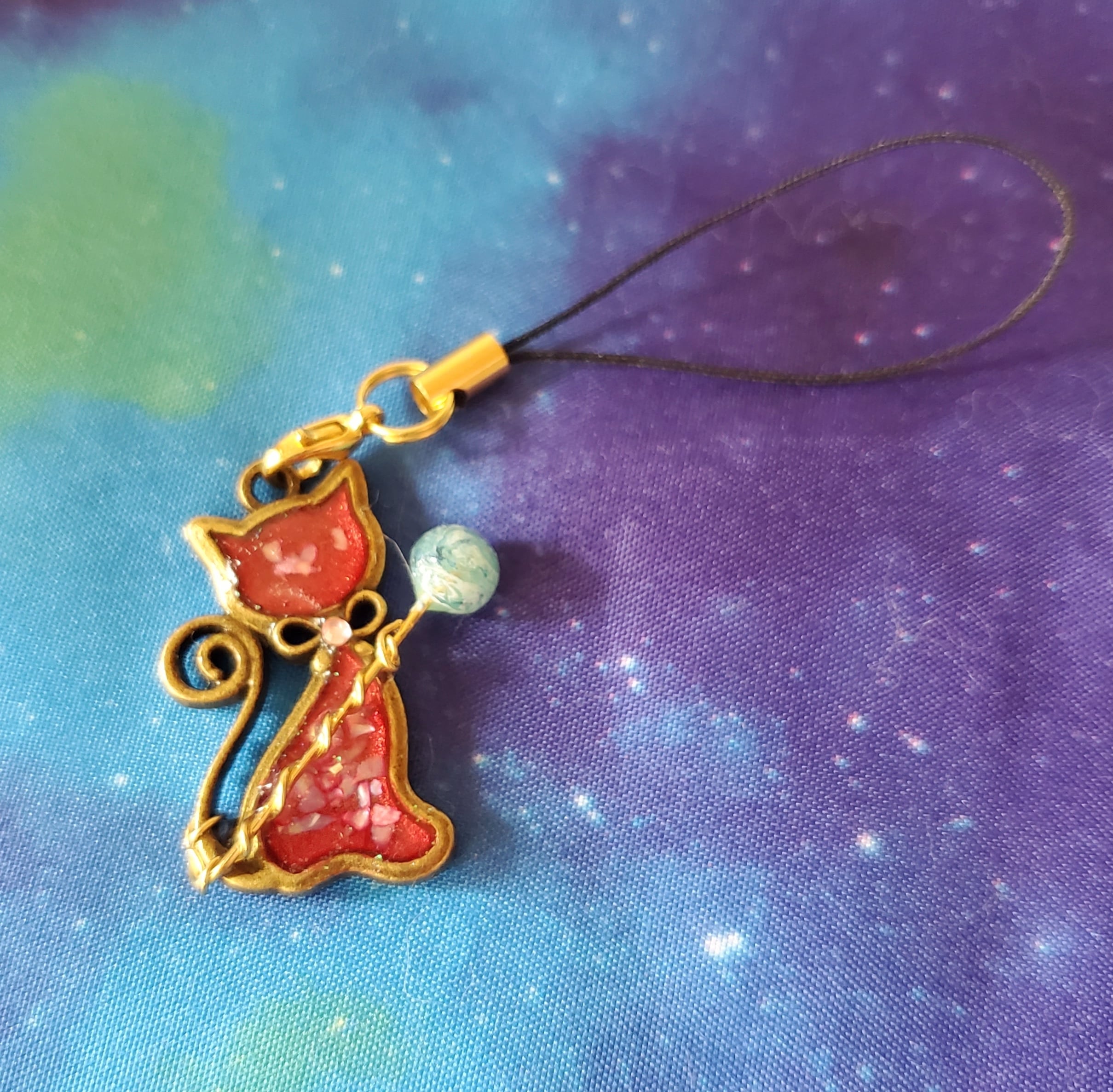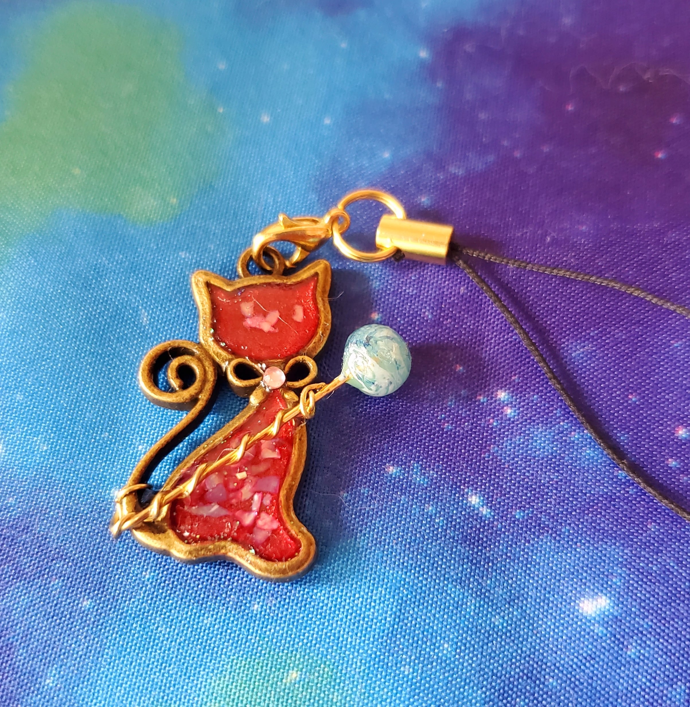 濃い赤ベースに色をつけ、赤のクラッシュシェルとピンクのグリッターで猫はぷっくり仕上げてます。