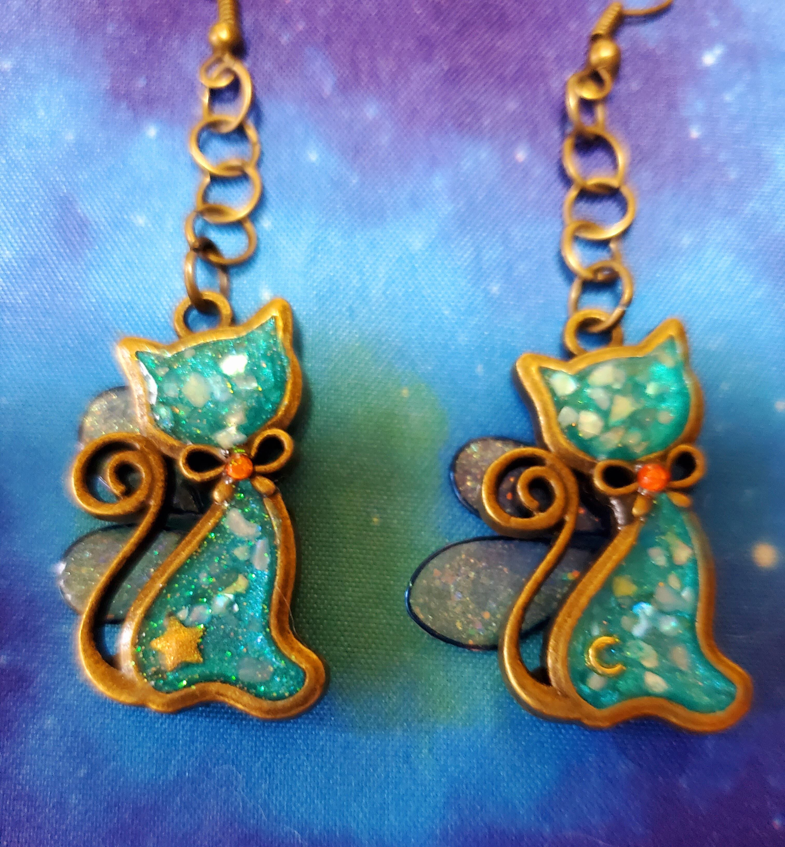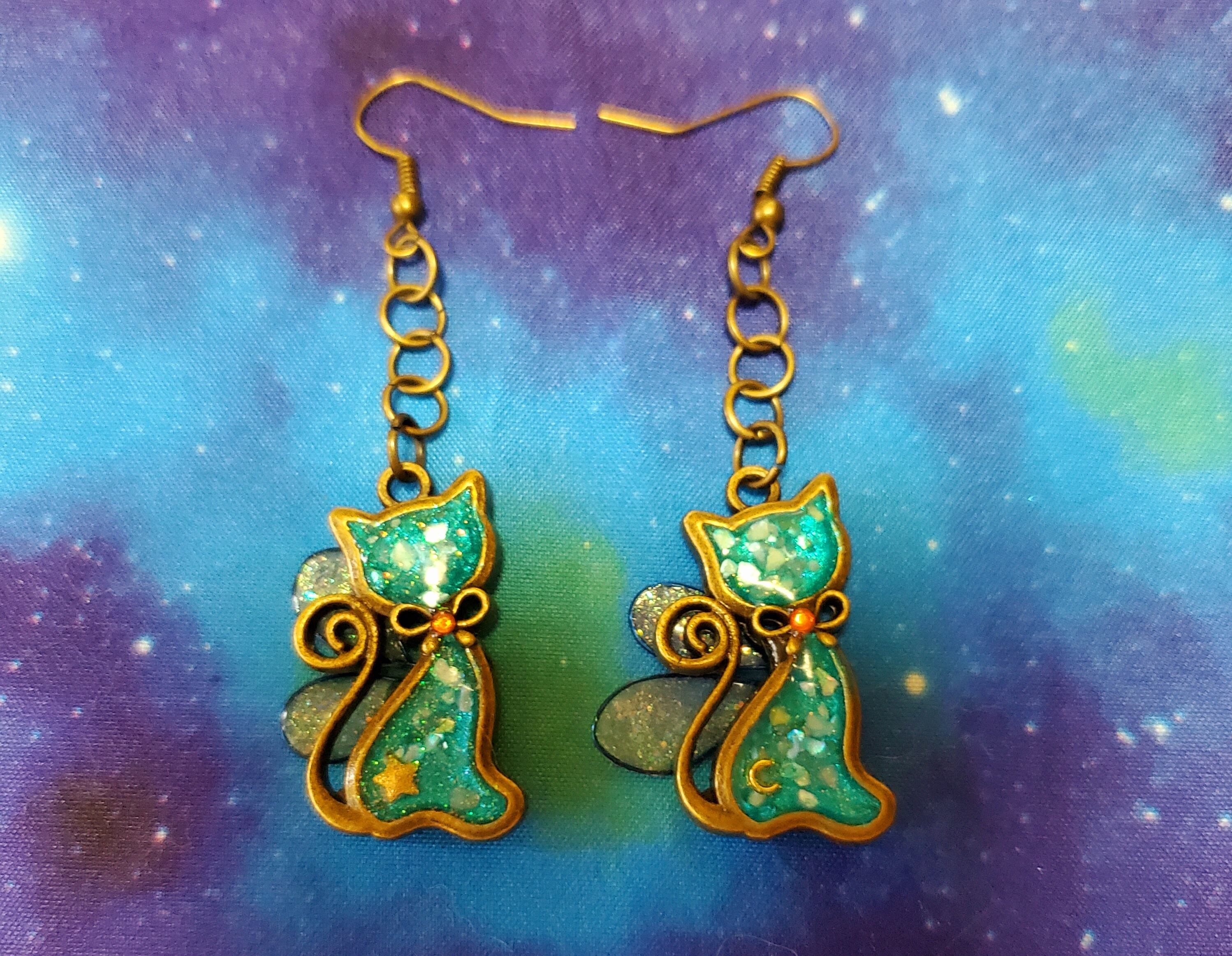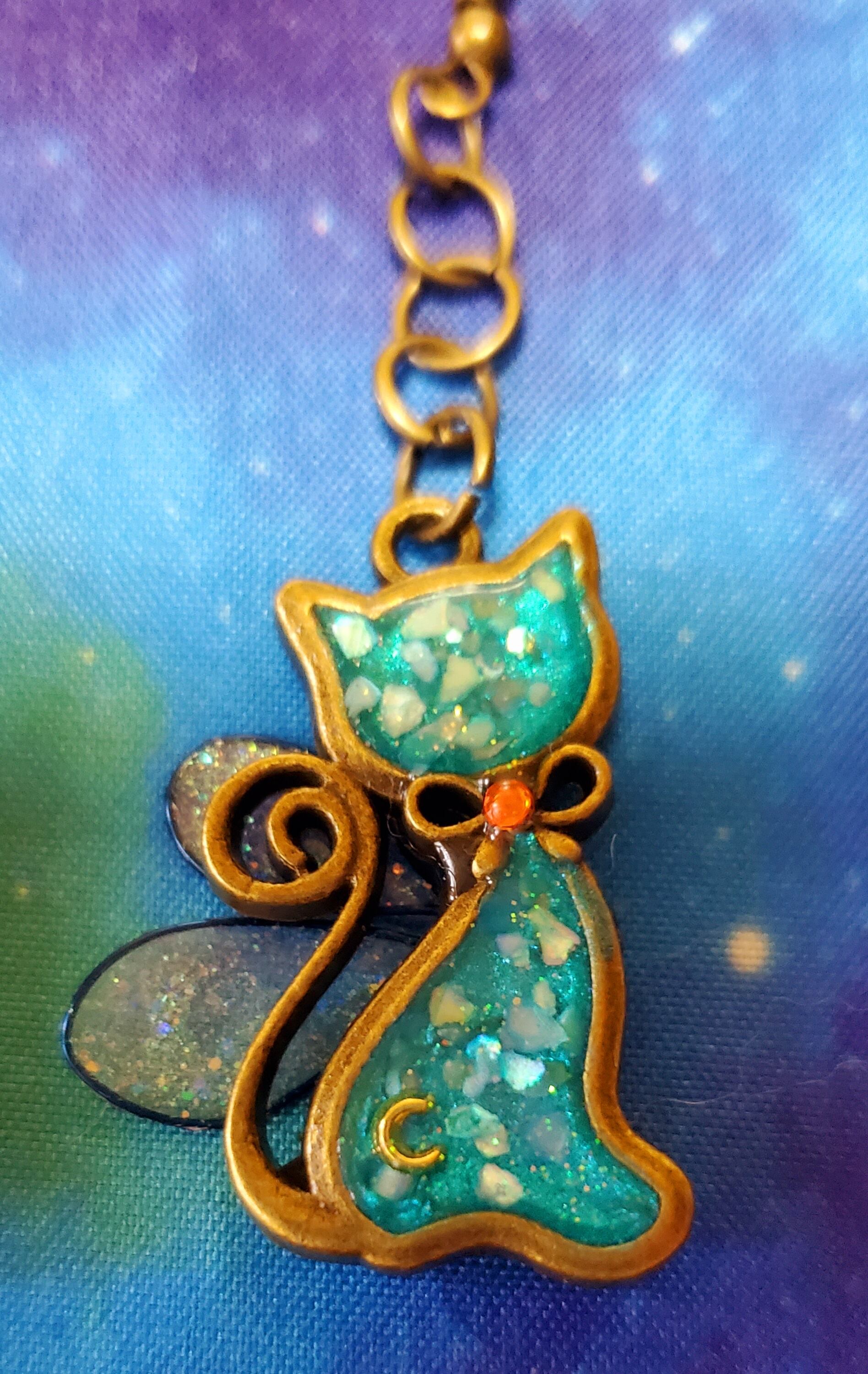 薄い青をベースに水色のシェルと紫のグリッターでねこを仕上げました。