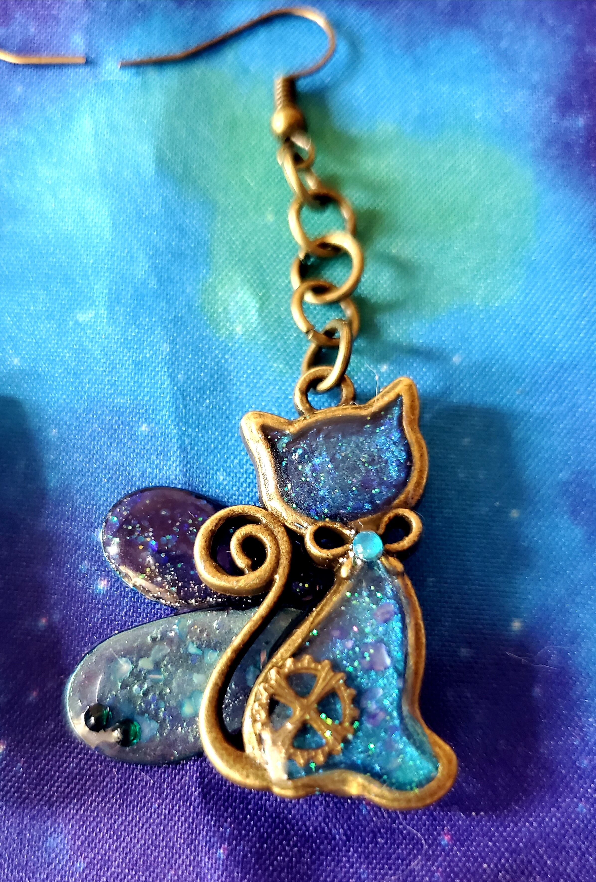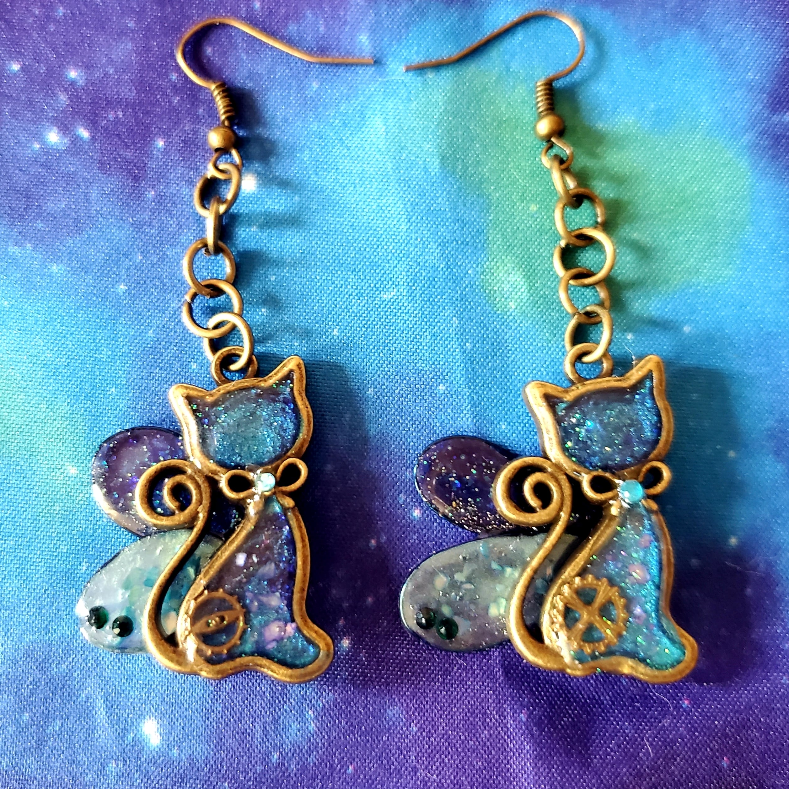 薄い青と紫を混ぜた色をベースに紫のグリッターでねこを仕上げました。