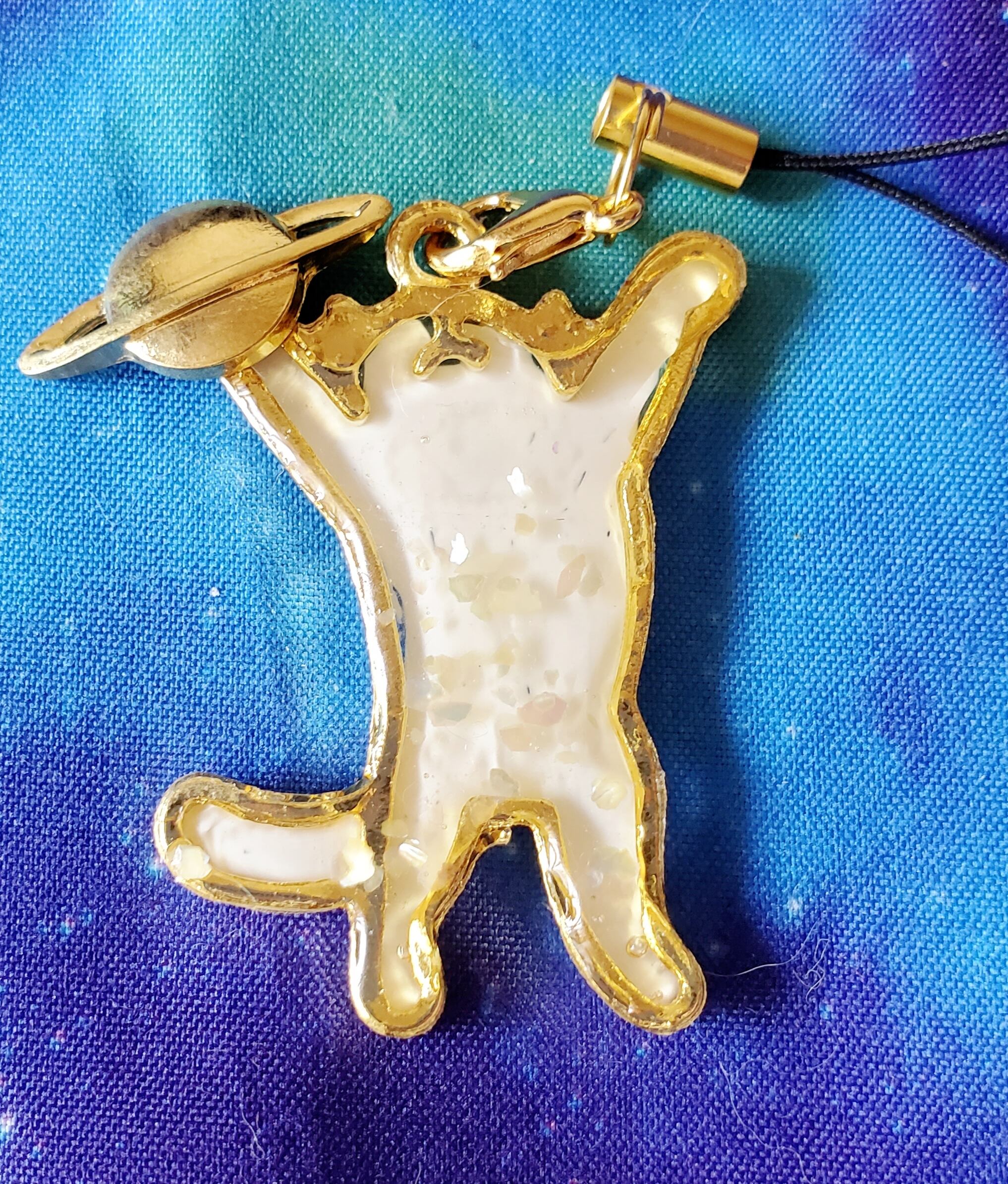 全体を白で色をつけた後で毛並みをイメージして線を軽くつけ、猫の下半身部分に白のシェルを混ぜて惑星のチャームを手に持たせました。