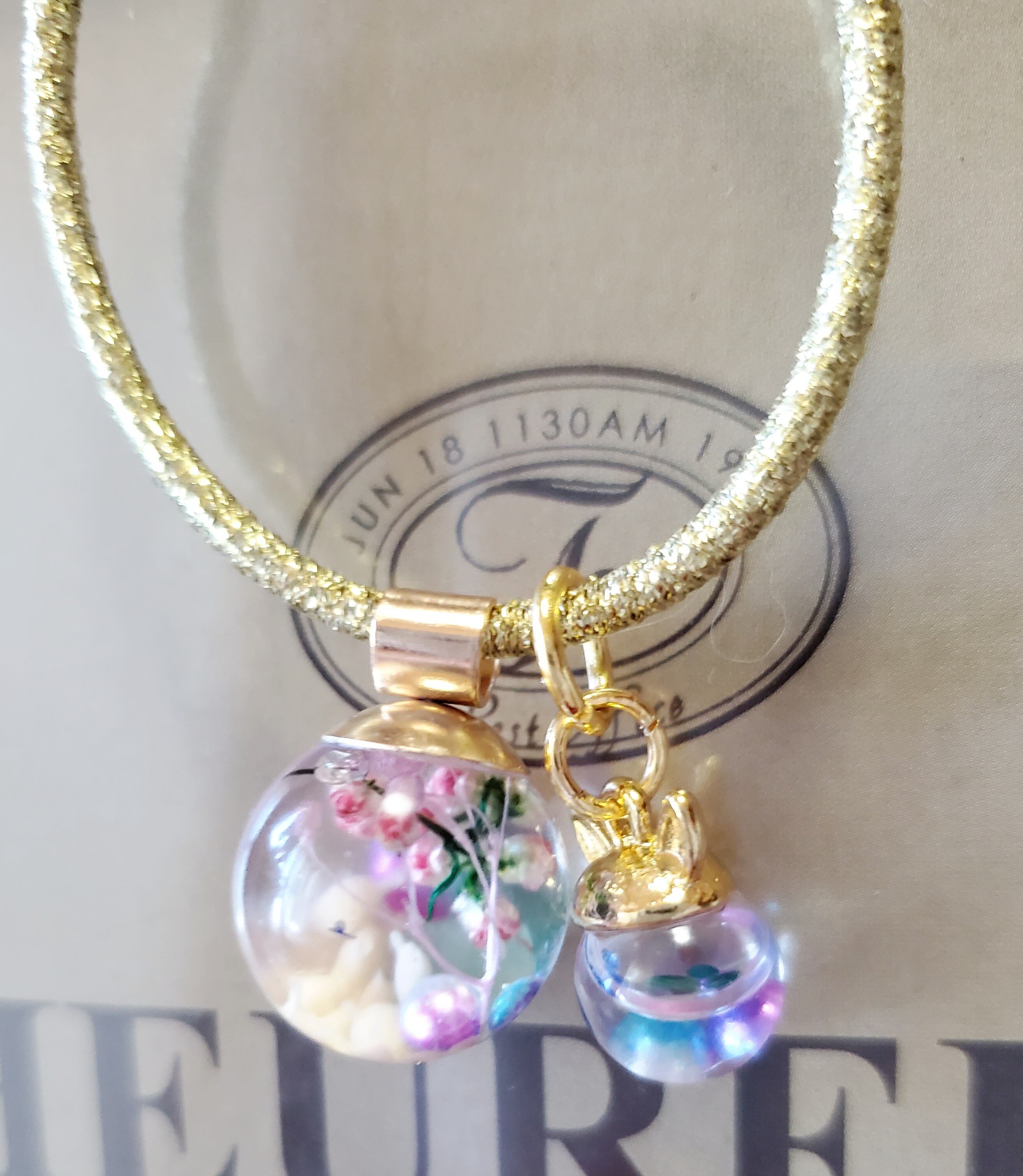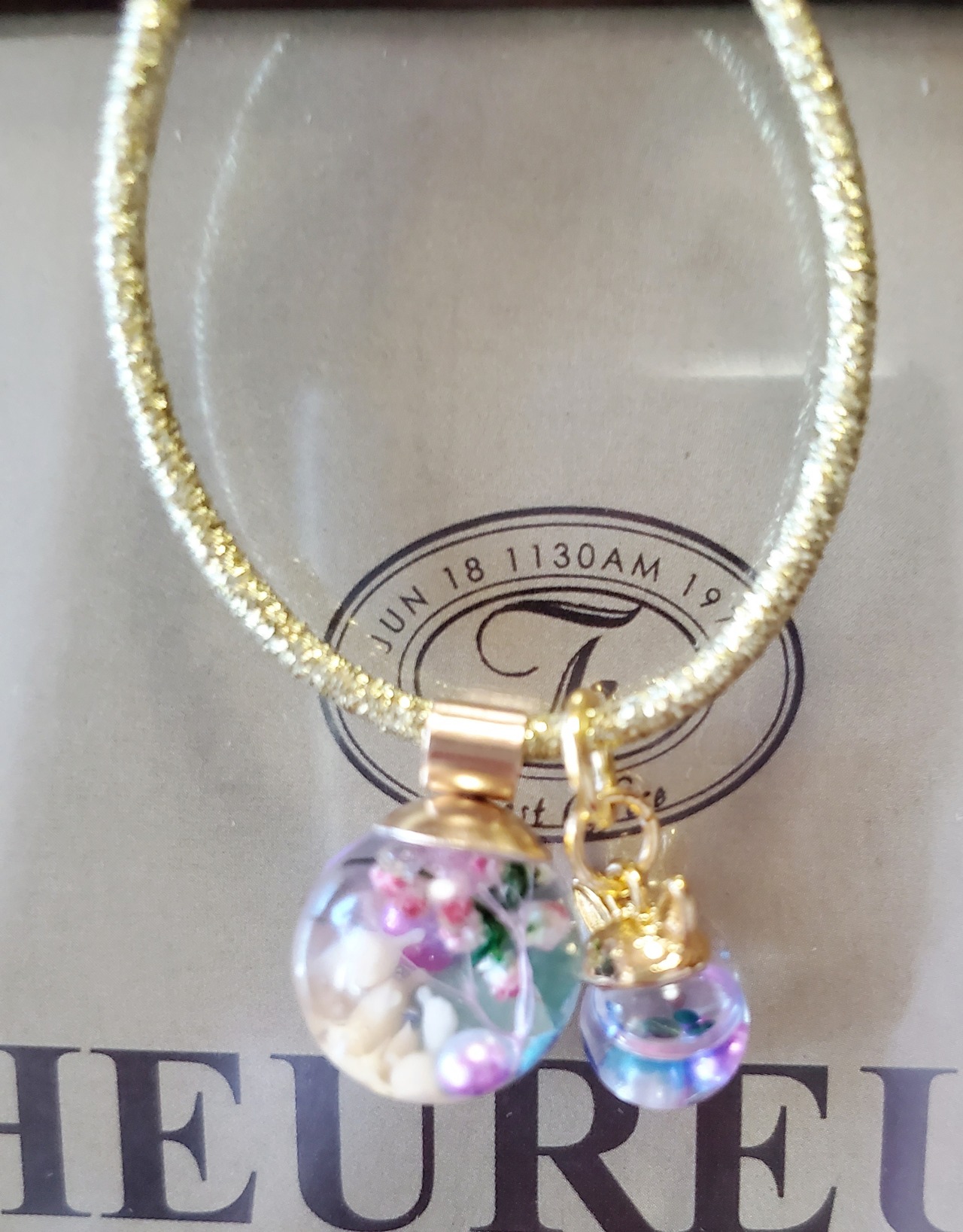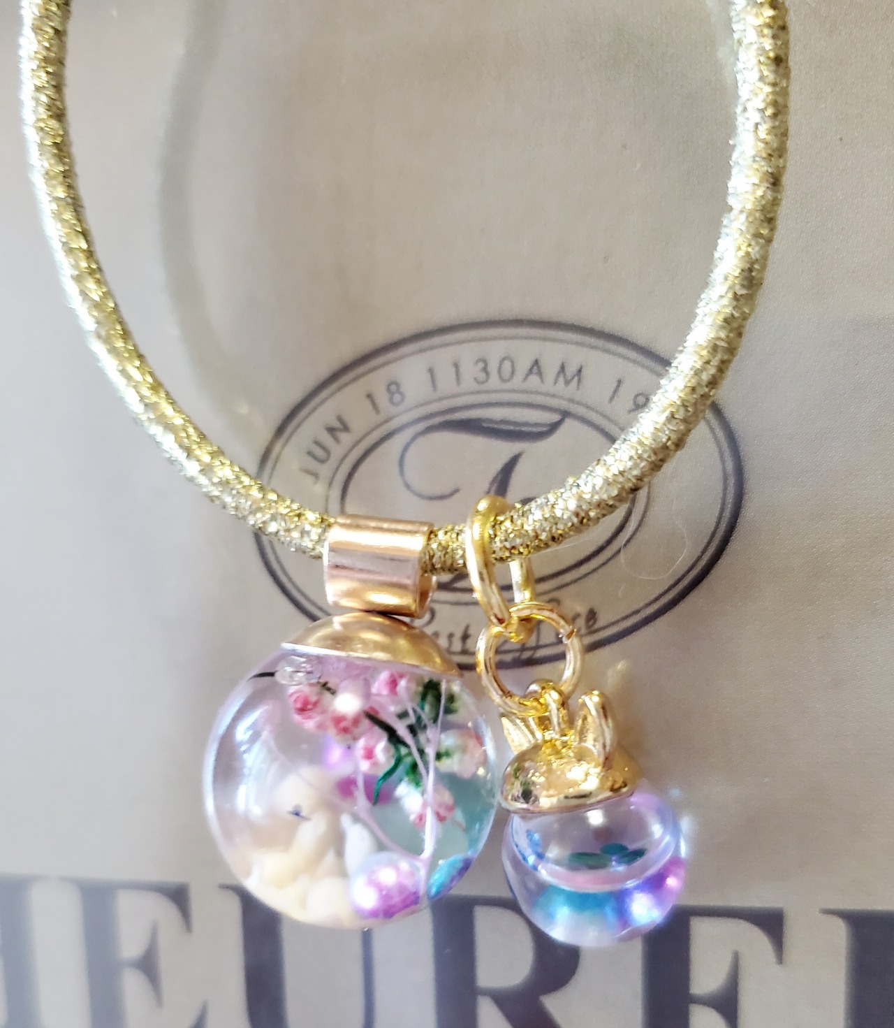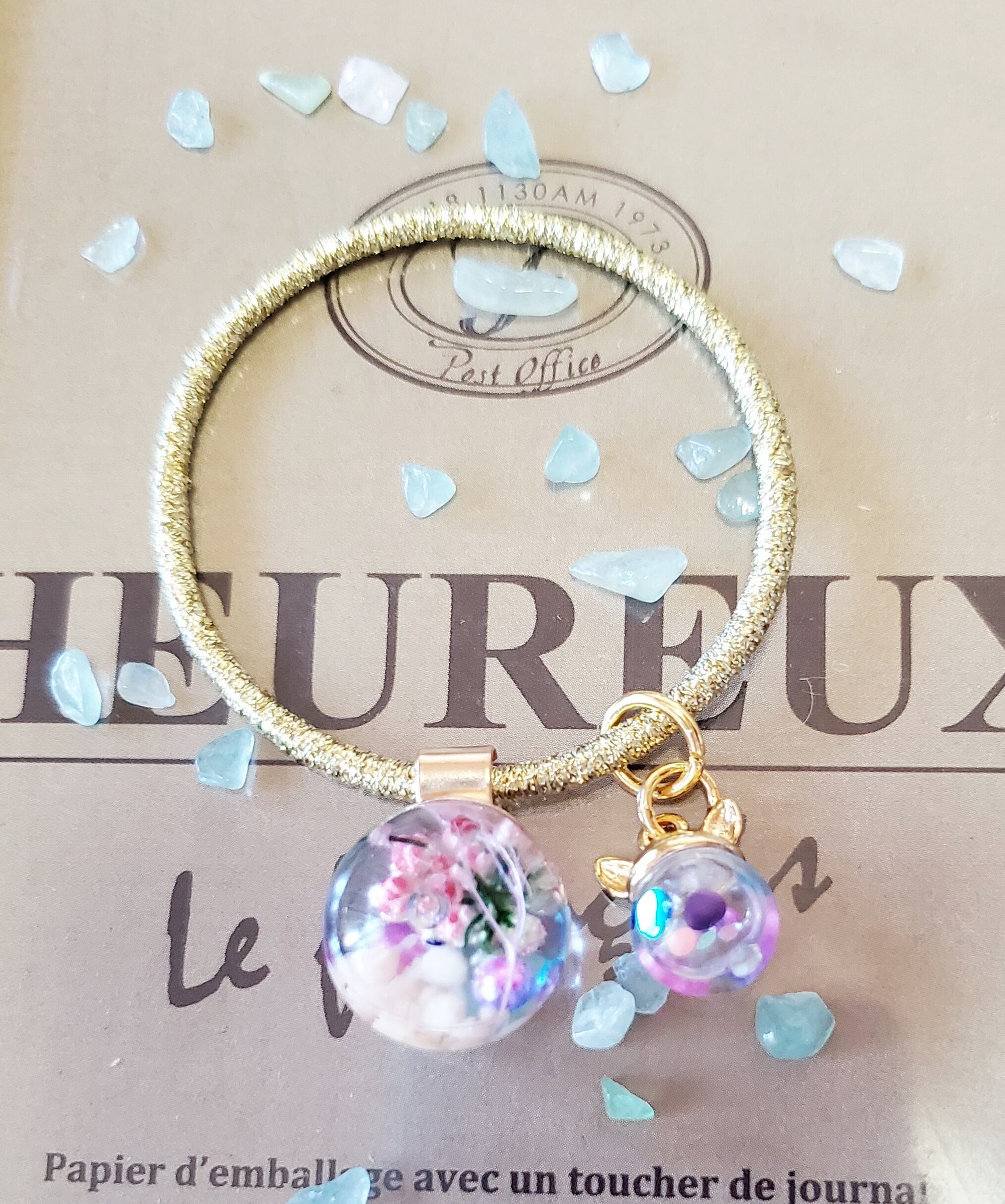 猫には紫のビーズとハーバリウムで入れてこちらもゆらゆらビーズが動きます。