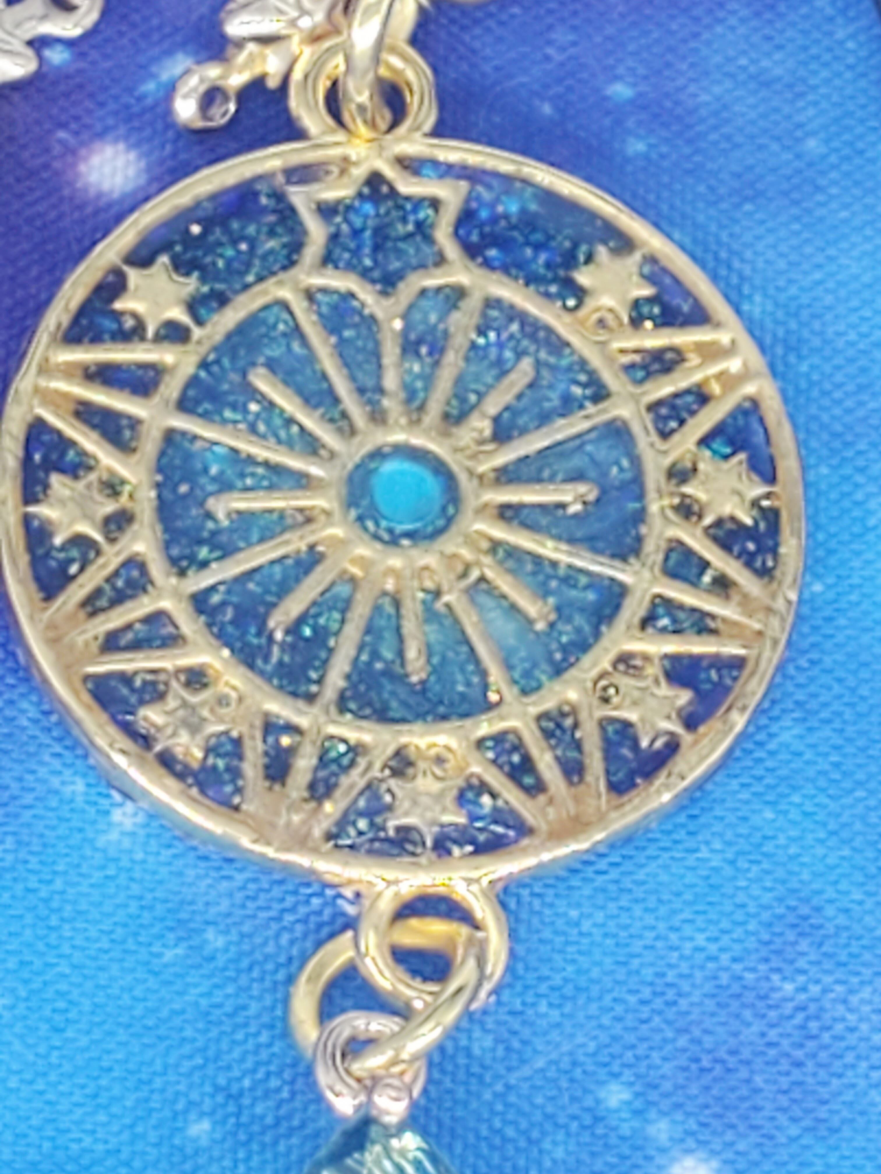 青のグラデーションで色をつけ、青のラインストーンと紫のグリッターで仕上げてます。
